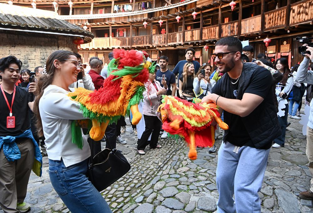 外国青年探访福建土楼:体验布袋木偶戏 感受世遗魅力
