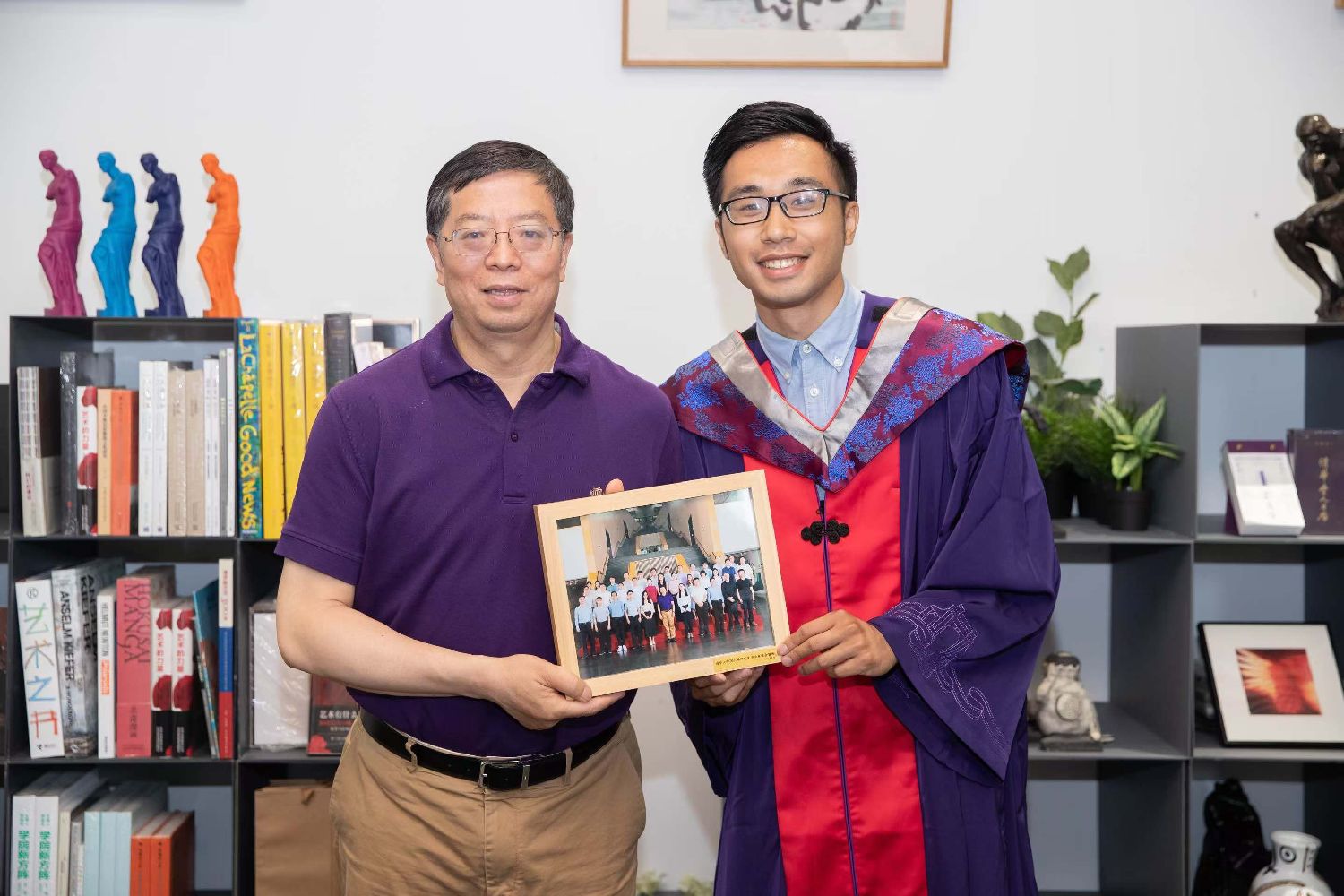 2021年,澳门青年廖伟骏(右)从清华大学博士毕业,与时任校长邱勇合影。(图片来源:本文图片均为受访者供图)