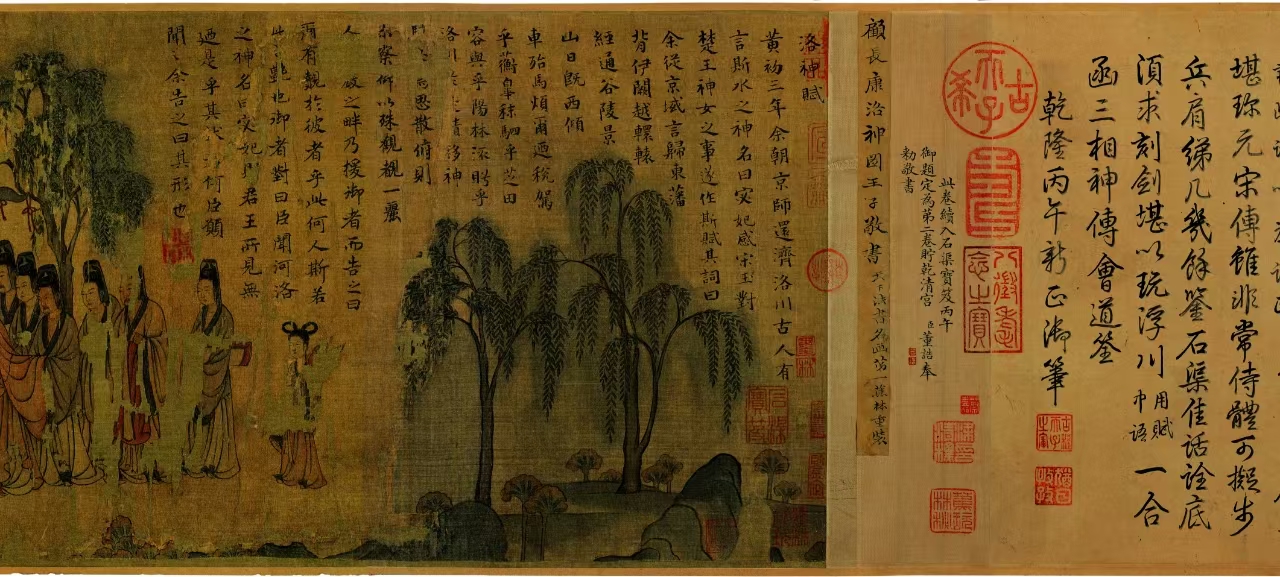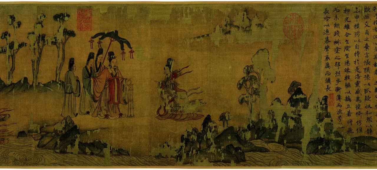 【编者按】晋代画家顾恺之以曹植名篇《洛神赋》为对象,创作了人物画长卷《洛神赋图》。在现存中国古代绘画中,《洛神赋图》被认为是较早来自文学作品的画作。此图真迹未能流传,宋人的摹本较好地保留了原作风貌,成为中国绘画史上的赫赫名迹。