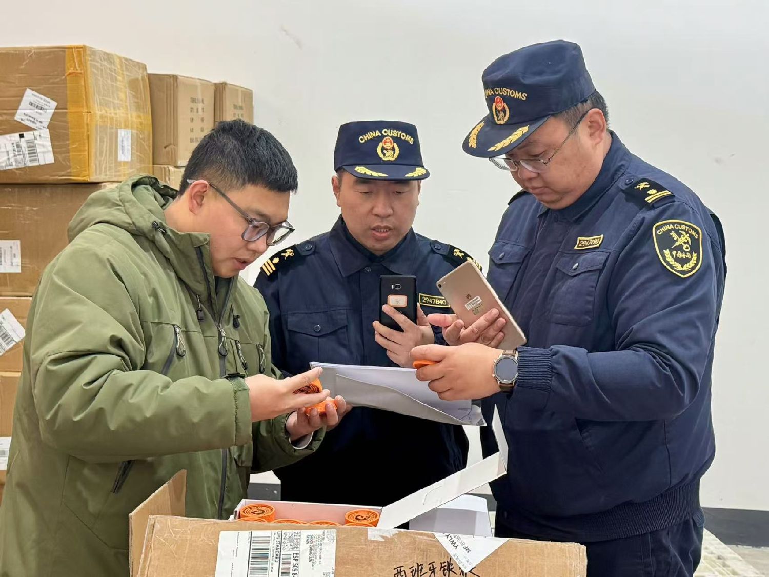 2024年12月12日,义乌海关关员对出口货物进行查验。