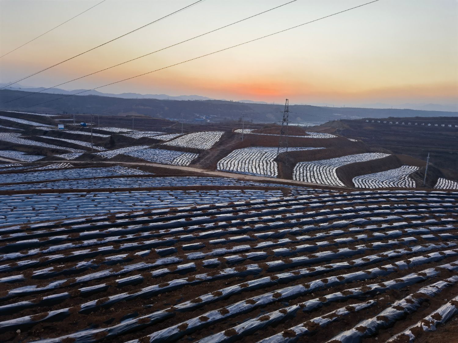 中新社报道,深冬时节,成片的叶岭村丹参田被层峦环抱,一排排盖着越冬地膜的田垄整齐划一,在夕阳照耀下镀上一层银色。记者近日跟随“高质量发展调研行”采访团来到河南嵩县。据统计,嵩县有中药材1300余种,被誉为“中药宝库”,丹参便是其中一种。