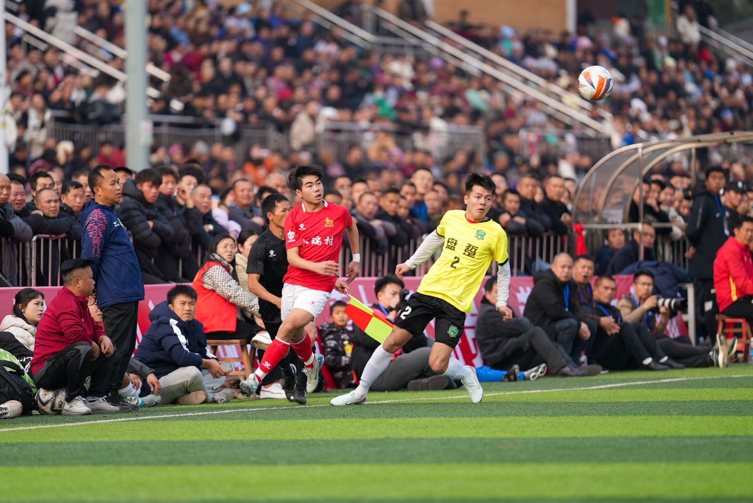 1月4日,小瑞村足球队与盘踅村足球队打响2025年贵州“村超”新赛季揭幕战。图为比赛现场。(图片来源:中新社)