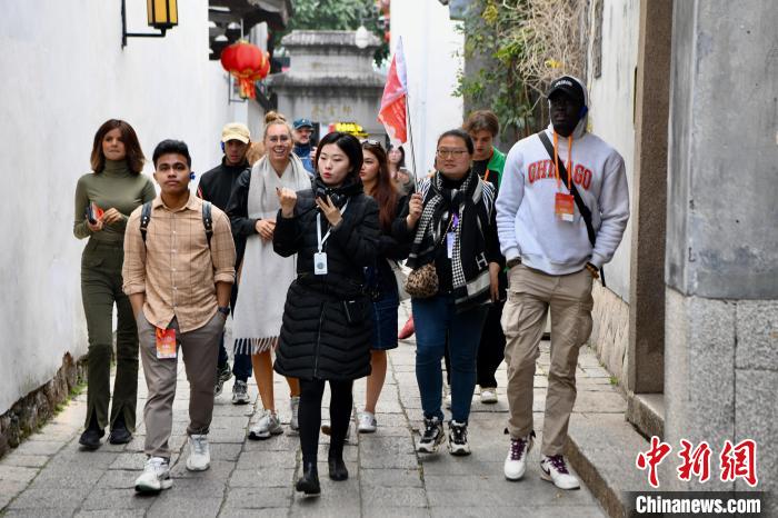 来自德国、澳大利亚、韩国、古巴、俄罗斯、意大利等国家的数十名国际旅游达人组成采风团,将深入体验中国福州三坊七巷、烟台山、上下杭、鼓岭、中国船政博物馆等热门旅游景点,沉浸感受多彩福州的文旅特色。图为国际旅游达人参访福州三坊七巷。(图片来源:本文图片均自中新网)