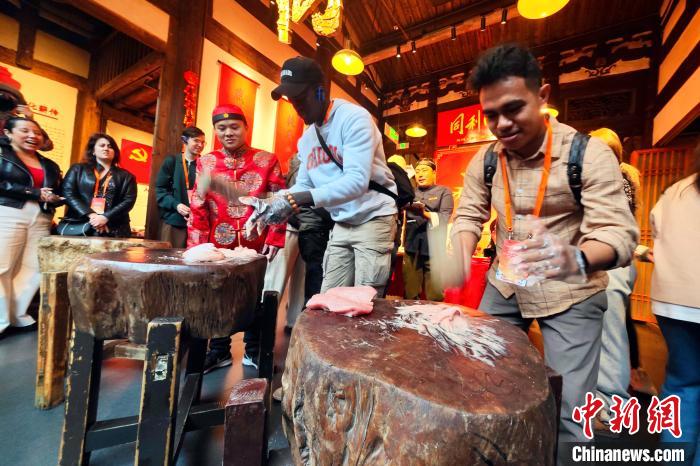 与此同时,国际旅游达人们将通过图文、视频等形式记录所见所闻,分享在Youtube、Instagram、Tiktok等国际社交平台,为全球游客生动讲述中国故事福州篇章。图为国际旅游达人体验传统手工肉燕制作。