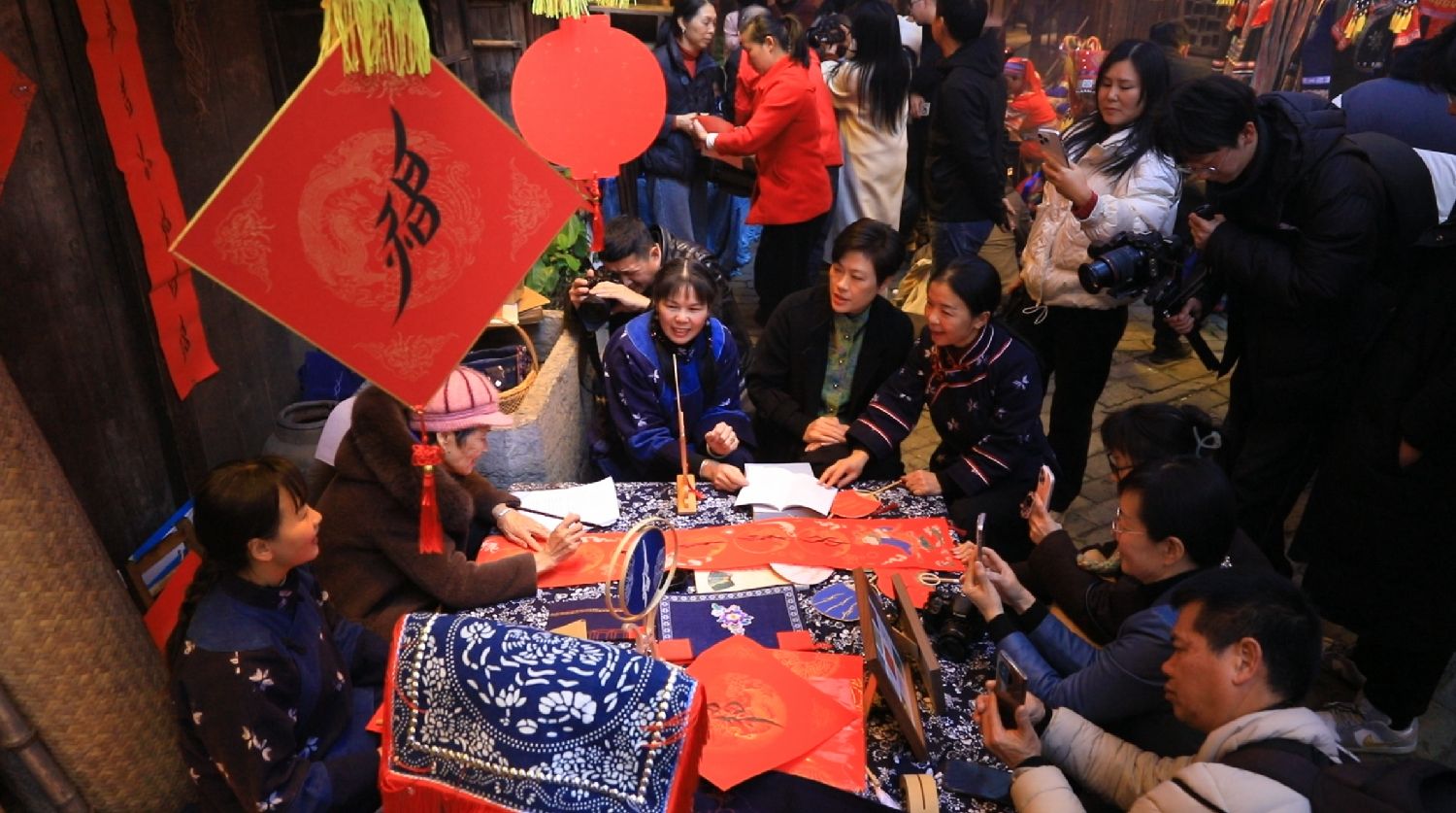春节期间,江永官方在该县各大景区设置女书春联书写点。