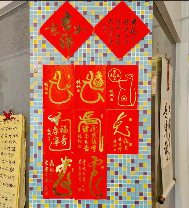当然,胡祎崟也会给自己留一张老师书写的春联贴在家里。“原本是贴在门框上,今年已经贴不下了,准备换个位置。”将七年来的春联挪至一面新墙上,她贴上了第八张春联,开始期待若干年后再为满墙春联“搬家”的一天。
