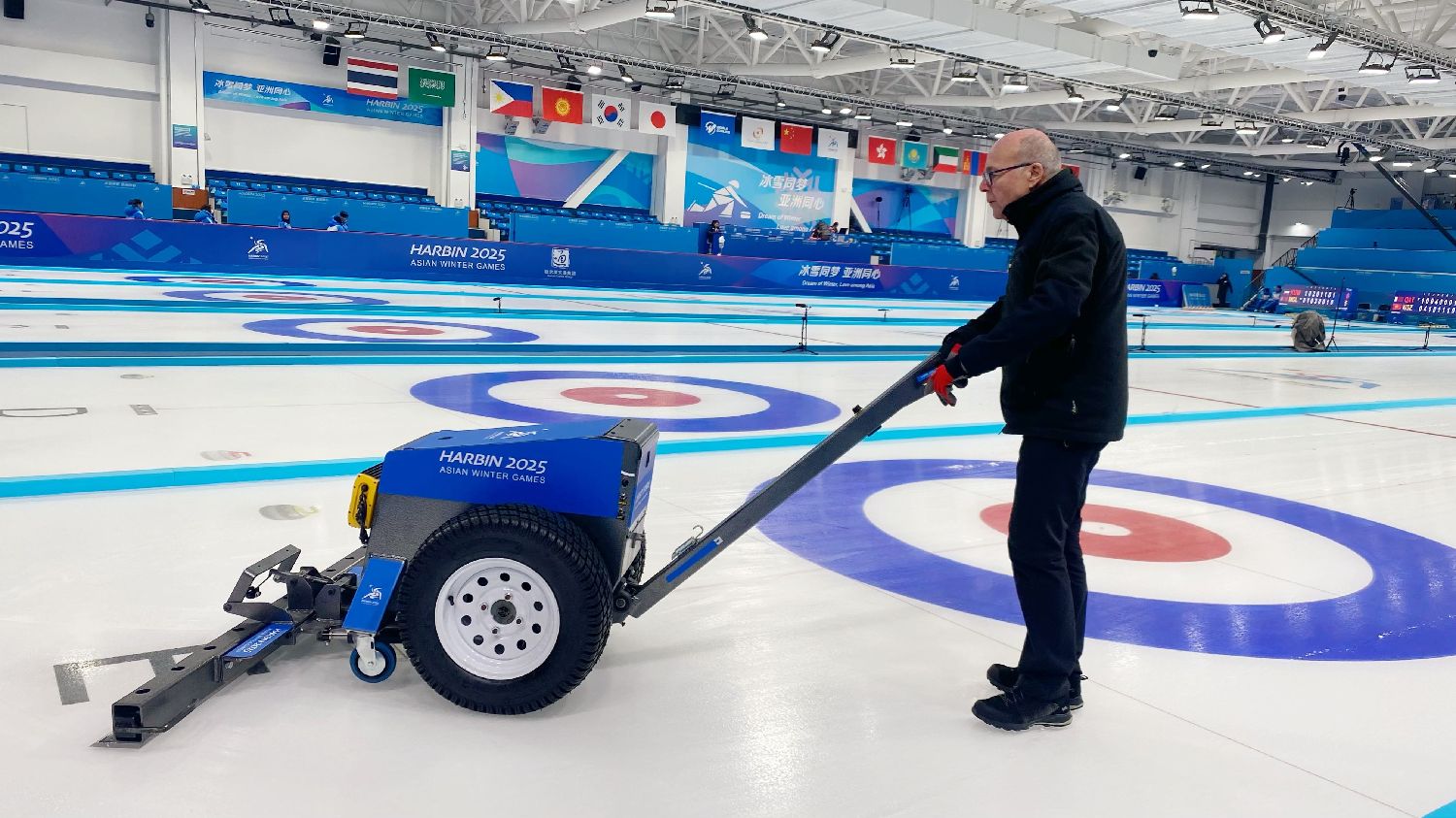 要达到国际赛事办赛标准,离不开高水平的冰面制作。亚冬会冰壶项目制冰团队负责人杜伟说,去年末制冰团队入场,来自德国和中国的共13名制冰师一起进行冰面改造,他们的团队也曾服务过北京冬奥会冰面制作。