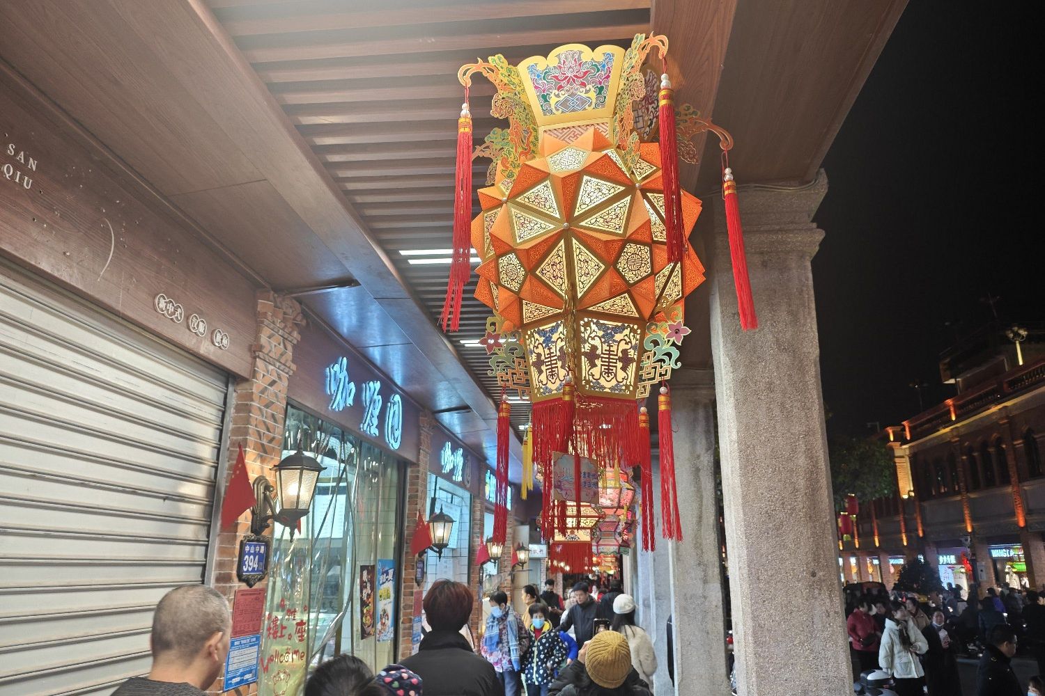 2月10日晚,福建泉州的街头巷尾已挂上各式花灯。(图片来源:中新社)