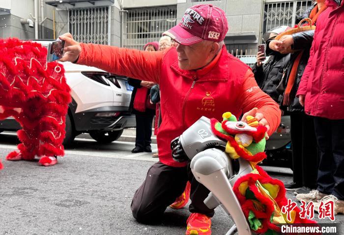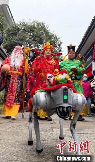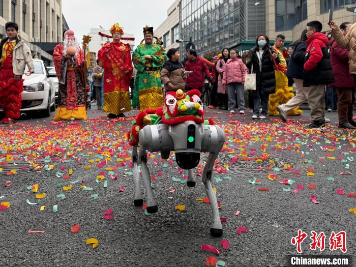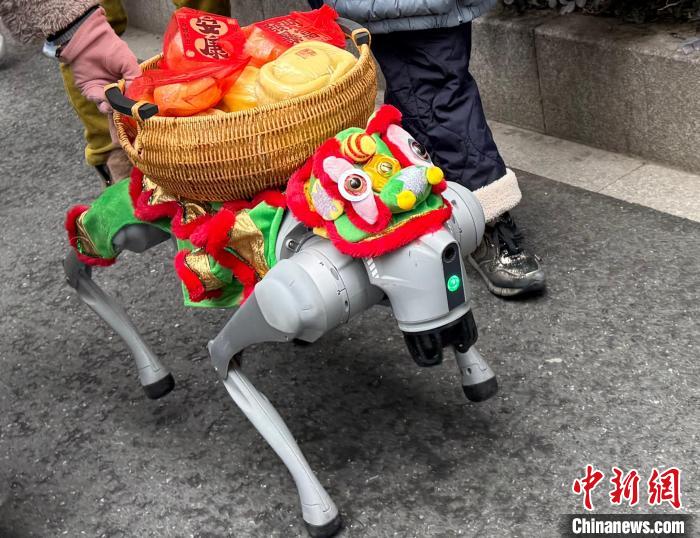 图为穿着花衣的机器狗走上街头与民众共闹元宵。(图片来源:本文图片均来自中新网)