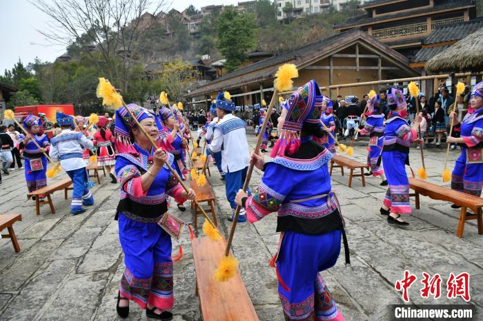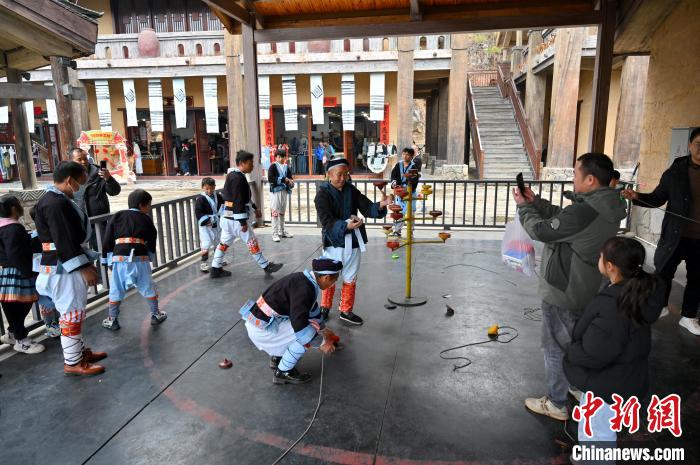 2月13日,“鼓韵河池·奇美南丹”中国国家级文化生态保护区建设成果展示活动暨2025年白裤瑶年街系列活动,在“世界白裤瑶乡”广西河池市南丹县举行。该县瑶望天下景区内,白裤瑶民众敲铜鼓、打陀螺,共庆年街节。白裤瑶是瑶族的一个支系,主要聚居在广西、贵州两省区,被联合国教科文组织认定为民族文化保留最完整的族群之一。