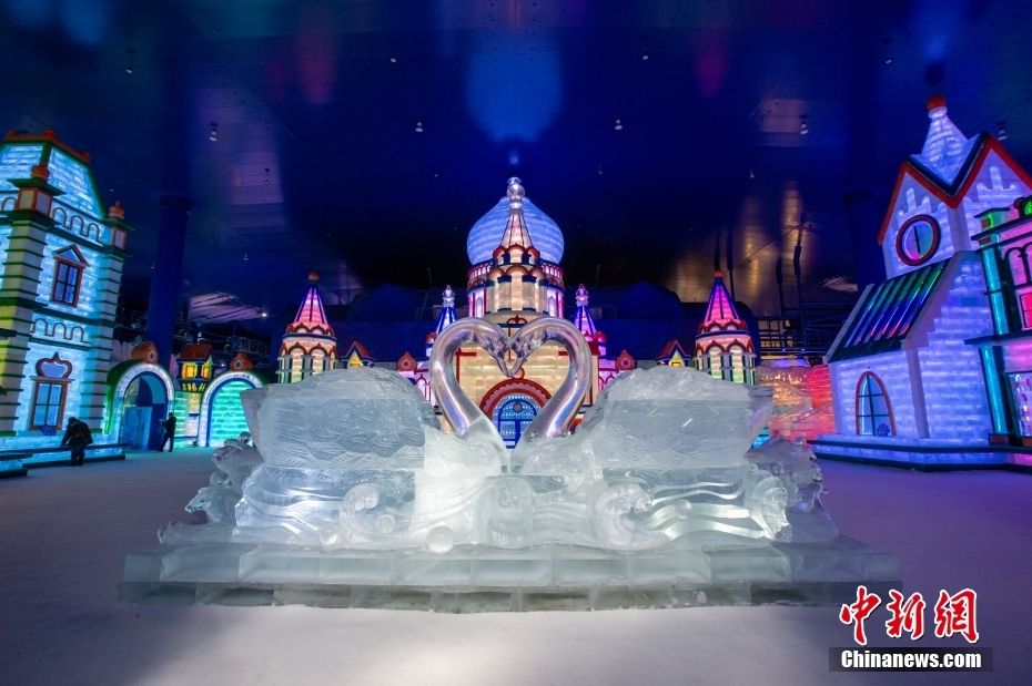 图为哈尔滨冰雪大世界梦幻冰雪馆内景观。
