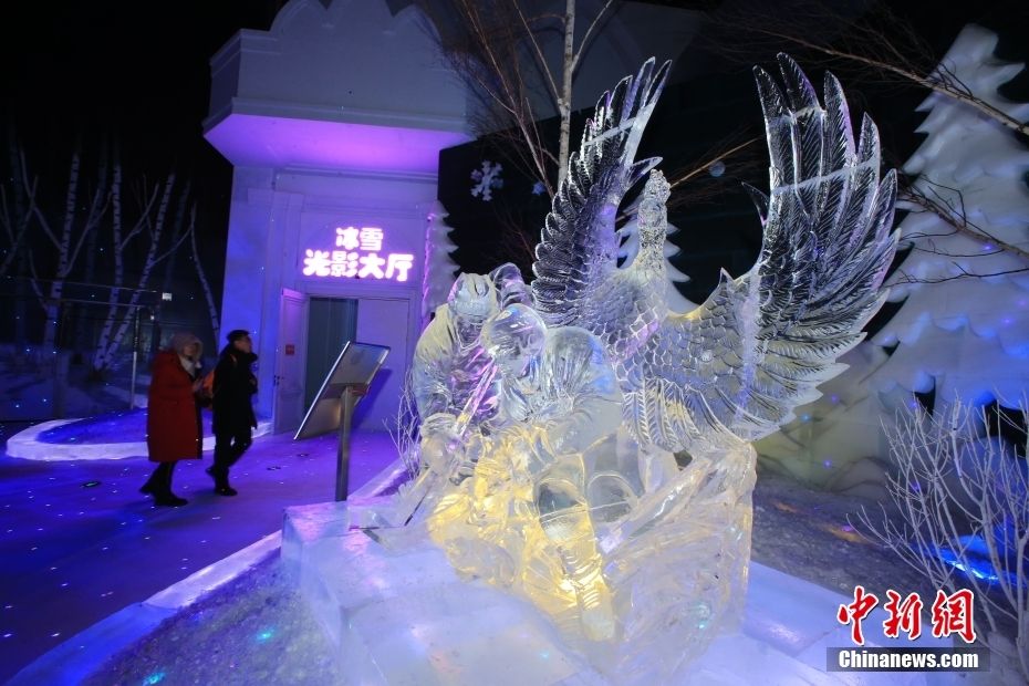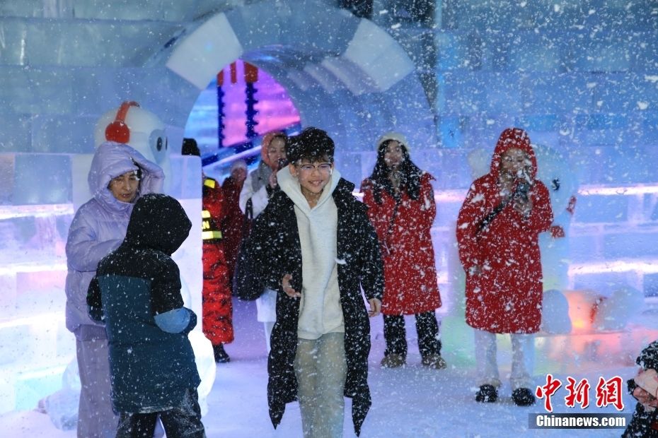 图为民众在哈尔滨冰雪大世界梦幻冰雪馆内游玩。(图片来源:本文图片均来自中新网)