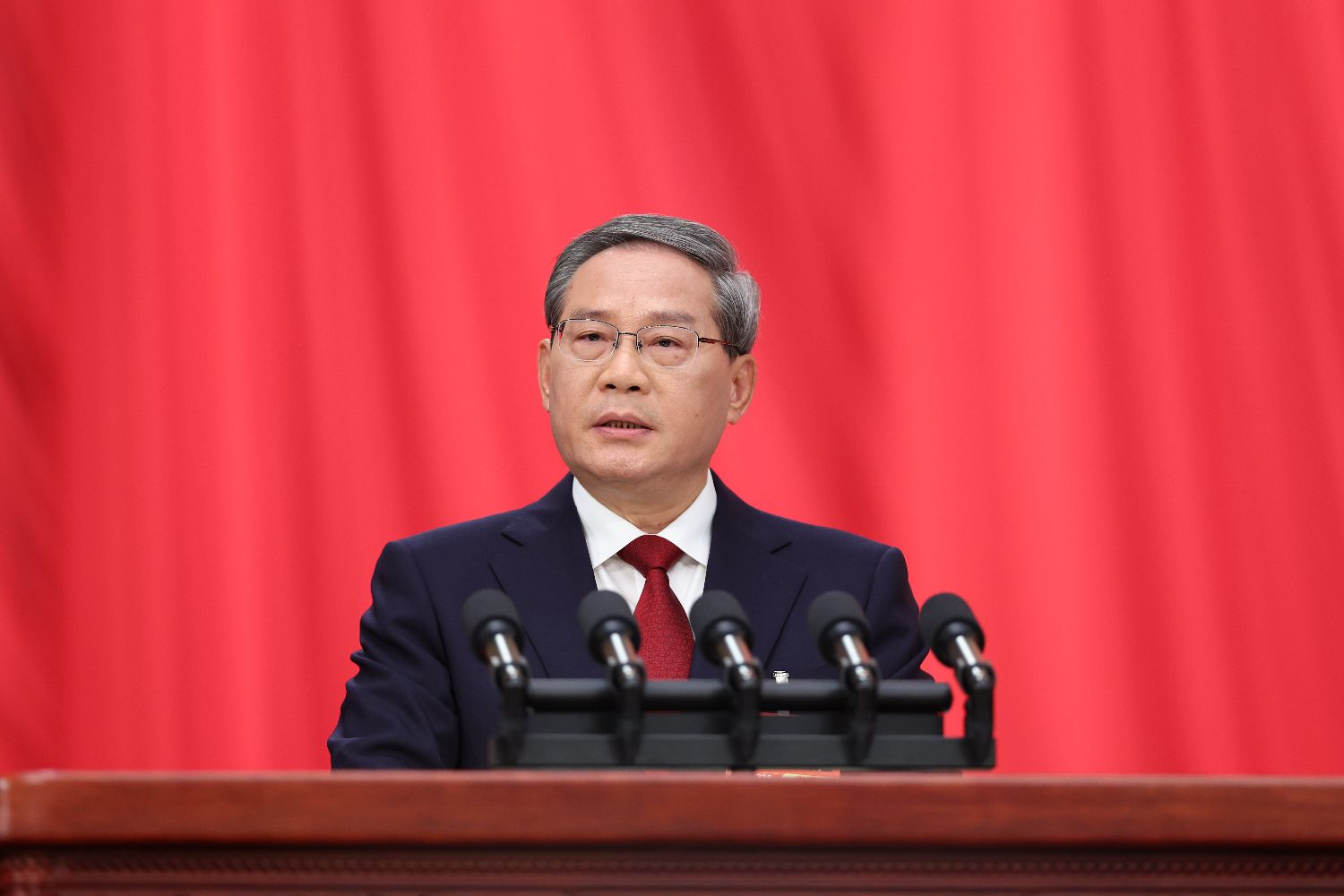 图为国务院总理李强代表国务院,向十四届全国人大三次会议作政府工作报告。