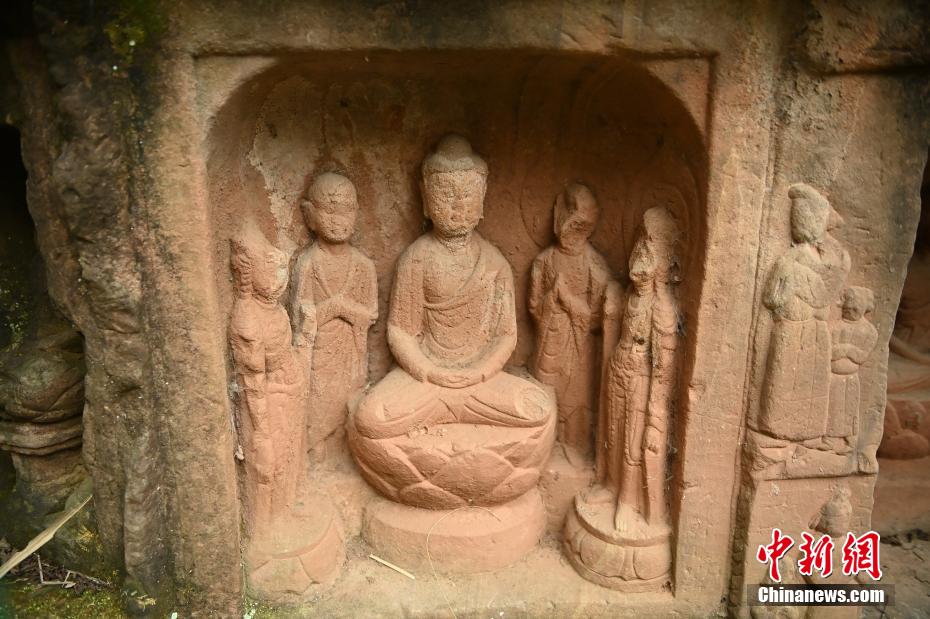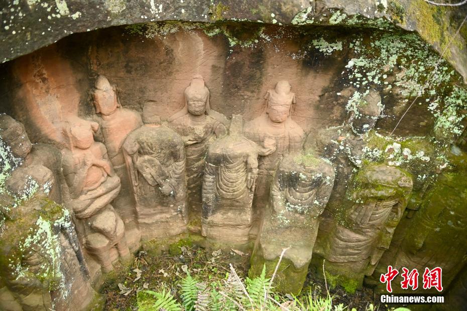 图为藏在乡野的牛角寨精美摩崖石刻造像。