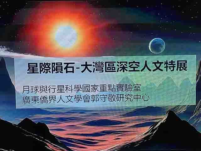 由广东侨界人文学会郭守敬研究中心与澳门科技大学月球与行星科学国家重点实验室联合主办的“星际陨石—大湾区深空人文特展”将于4月中旬在澳门科技大学开幕,展出三十多件来自世界各地不同种类的天体标本,对公众免费开放。主办方希望借此让市民近距离接触来自宇宙的神秘陨石,感受宇宙的浩瀚和星空的神秘魅力,从而加深对宇宙的认知,并激发青年学生对科学的无限好奇及探索。