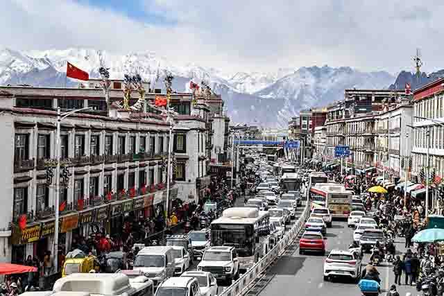 2月21日,拉萨市中心热闹街景。(图片来源:本文图片均据中新社)