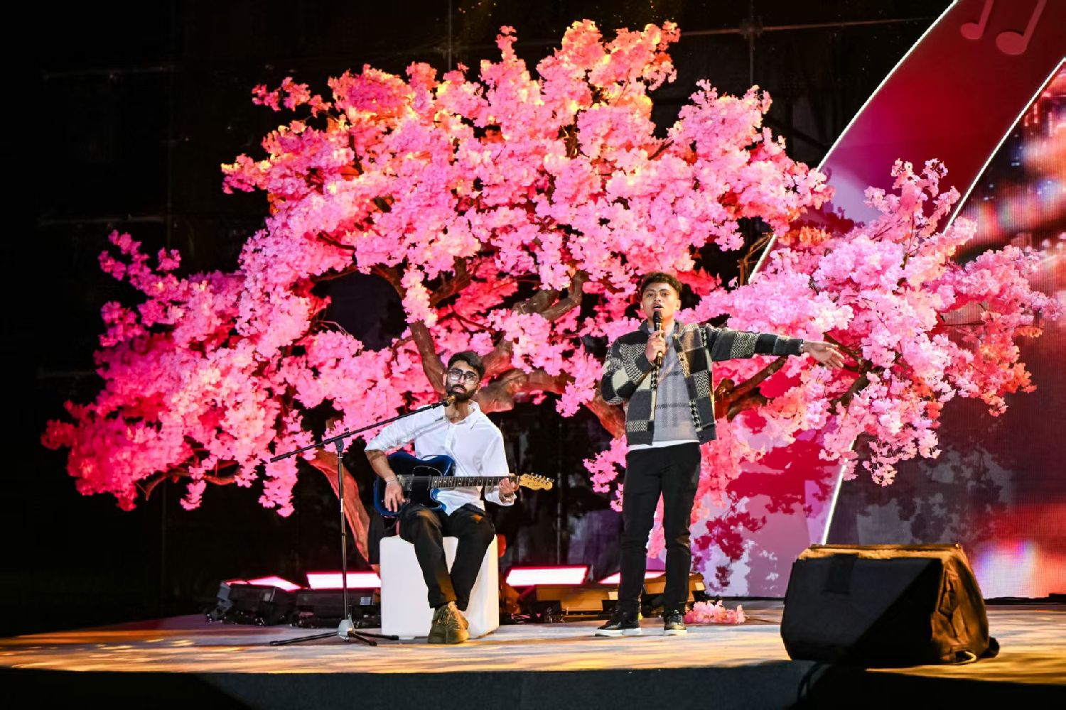 3月28日晚,2025中国—东盟教育交流周国际青年春日音乐会在贵州贵安樱花园举行,图为活动现场。(图片来源:中新社)