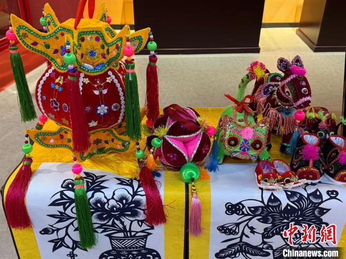 图为展览馆展出的当地特色民间艺术。