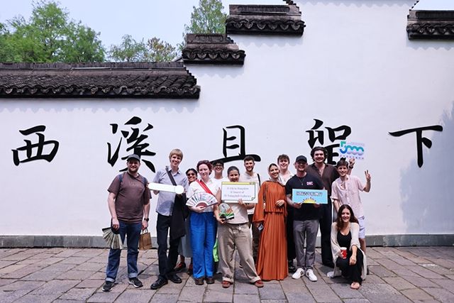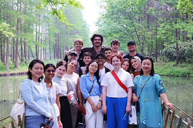 国际青年在西溪湿地合影。(图片来源:主办方供图)