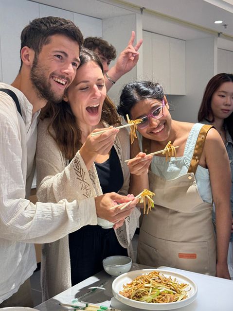 青年们还在杭州新晋地标文二菜市场展开趣味挑战,分组采购本地时令食材,并在开放式共享厨房共同烹制地道杭帮菜。恰逢体验团成员利奥·纳斯考(Leo Nasskau)的生日,这位英国青年感动地说:"杭州在我眼中是座充满温情的城市,我在这里收获了意想不到的友谊。"在锅碗瓢盆的协奏中,东西方美食文化碰撞出别样火花。