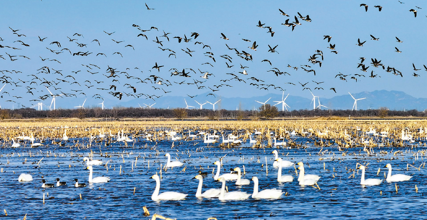 今春候鸟迁徙季高峰期的官厅水库。(图片来源:马文晓摄)