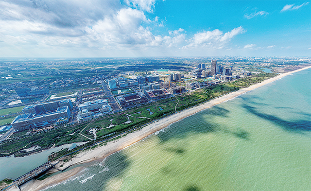 正在建设中的海南自贸港重点园区江东新区。(图片来源:骆云飞 摄)