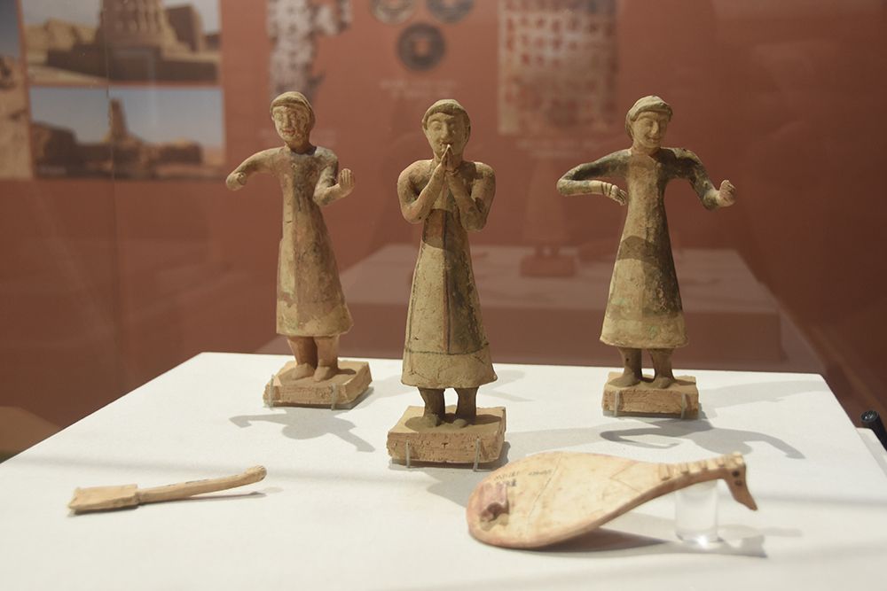 2月27日,河南安阳博物馆“丝路遗韵相州风——麴庆墓出土文物展”素烧侍从俑正在展出。(图片来源:中新社)