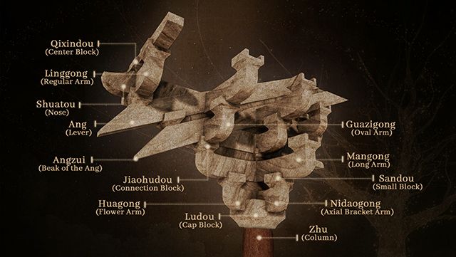 (唐代建筑斗拱拆解示意图)