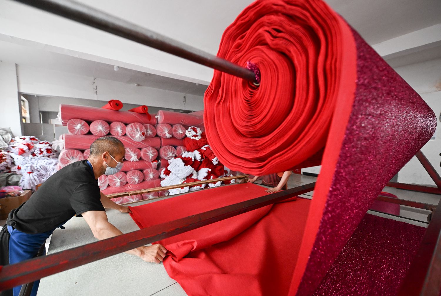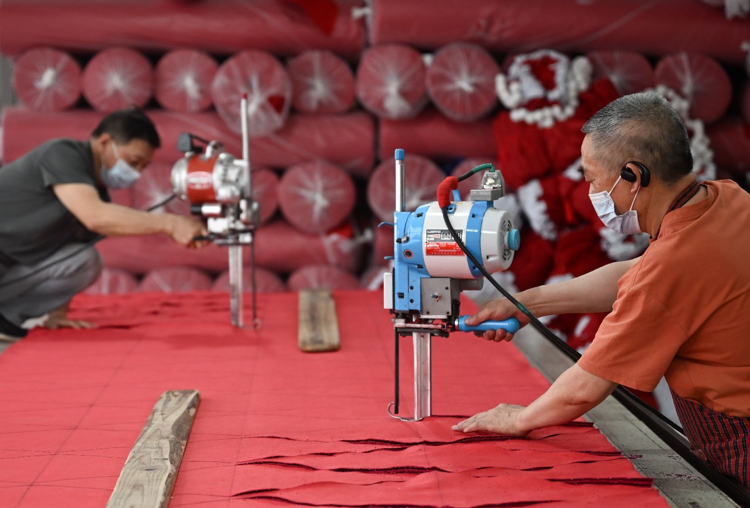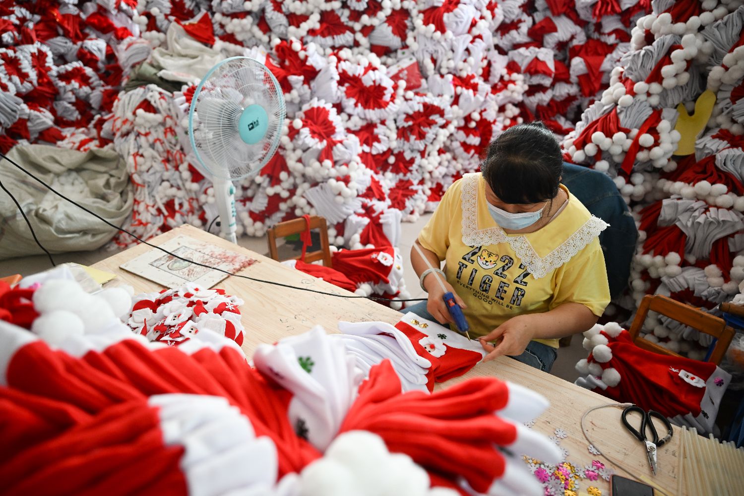近日,在全球圣诞用品集散地——浙江义乌,“圣诞经济”逐步升温,不少商家和企业迎来圣诞装饰用品的生产高峰期,供应来自国际市场的订单需求。
