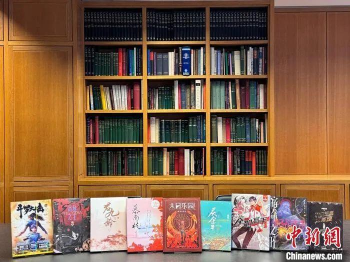2024年11月21日,大英图书馆举行《斗罗大陆》《庆余年》《全职高手》等10部中国网文的藏书仪式。图为此次入藏的部分图书。(图片来源:本文图片均自中新社)