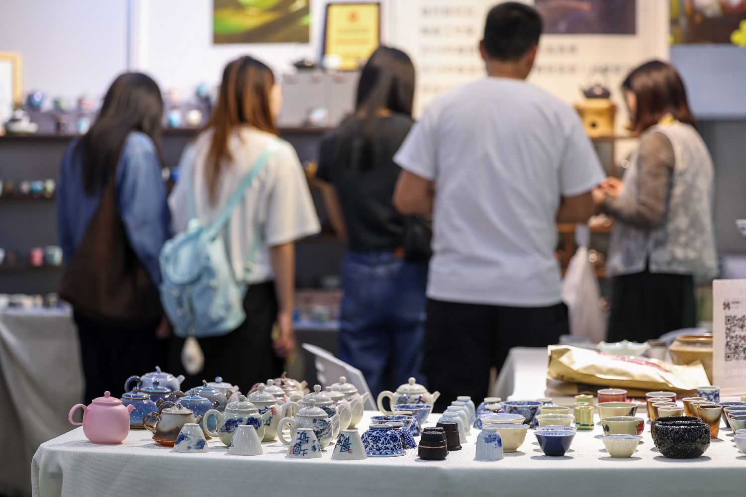 5月21日,观众在第七届中国国际茶叶博览会现场挑选茶器。