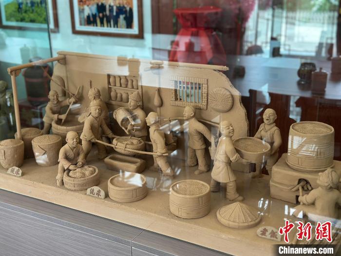 图为泥塑作品展示黄酒酿造流程。(图片来源:本文图片均来自中新网)