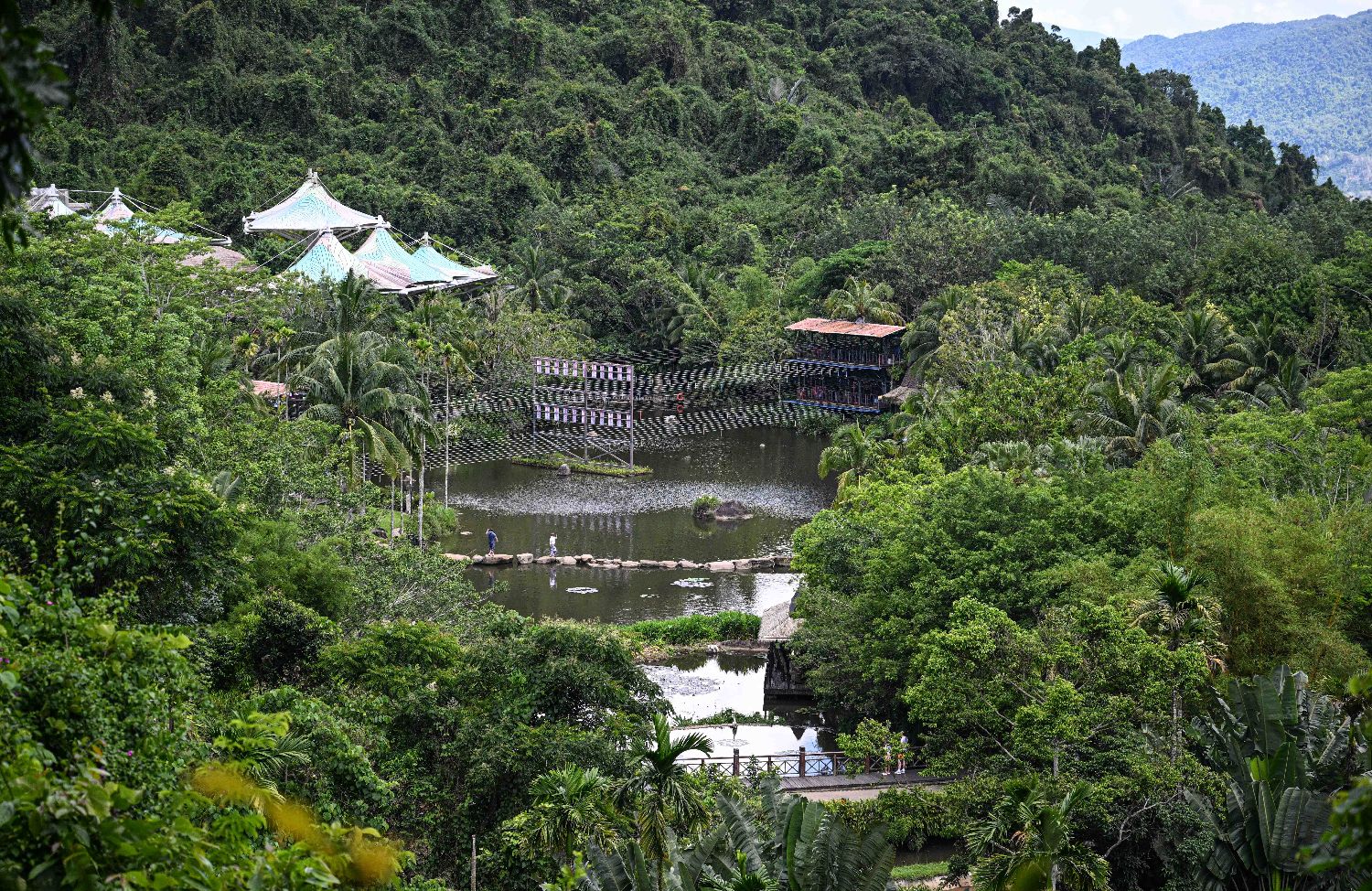 位于海南保亭的呀诺达雨林文化旅游区拥有湿地、沟谷、溪涧等多样生态环境,孕育了丰富的原生态植被,生长着1400多种乔木、140多种南药、80多种热带花卉。景区山峦叠翠,林木葱郁。