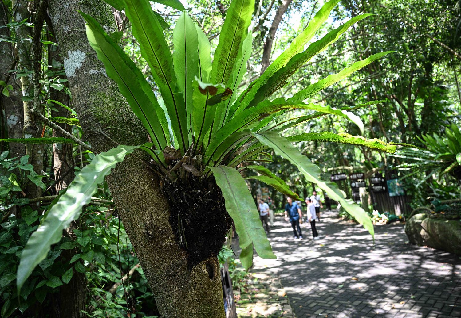 5月20日在位于海南保亭的呀诺达雨林文化旅游区拍摄的鸟巢蕨及空中花园现象。