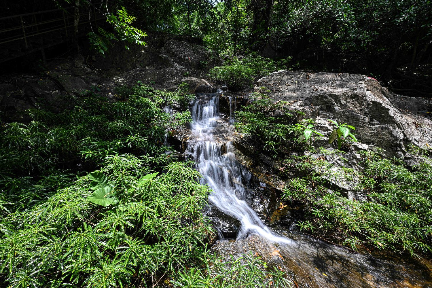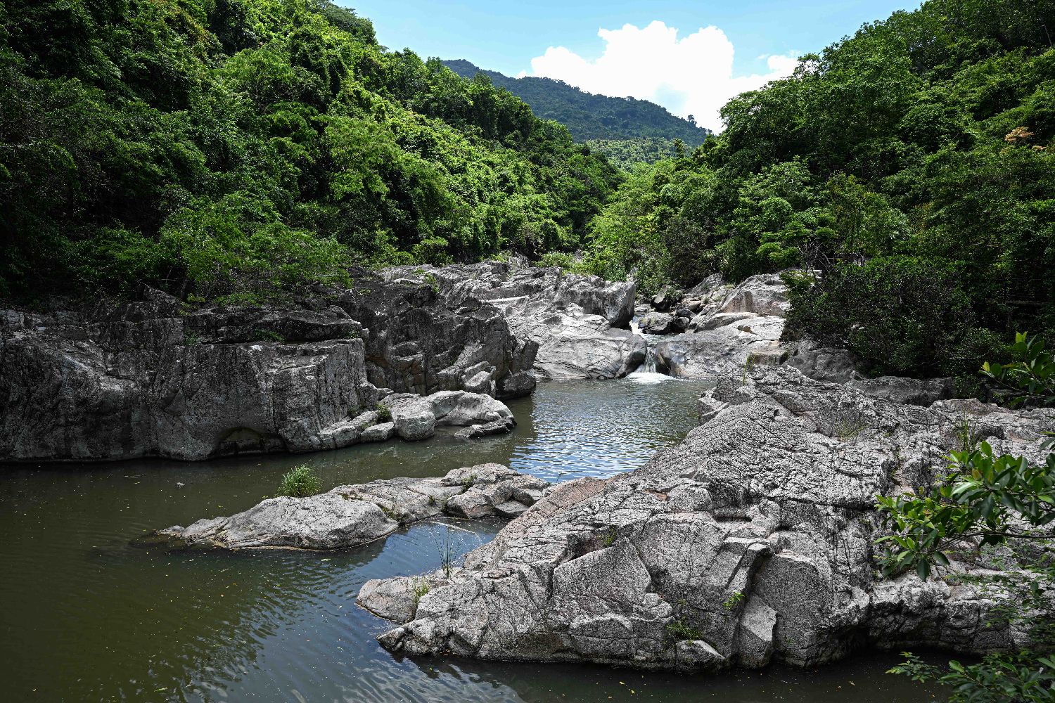5月21日在位于海南保亭的呀诺达雨林文化旅游区拍摄的溪涧。