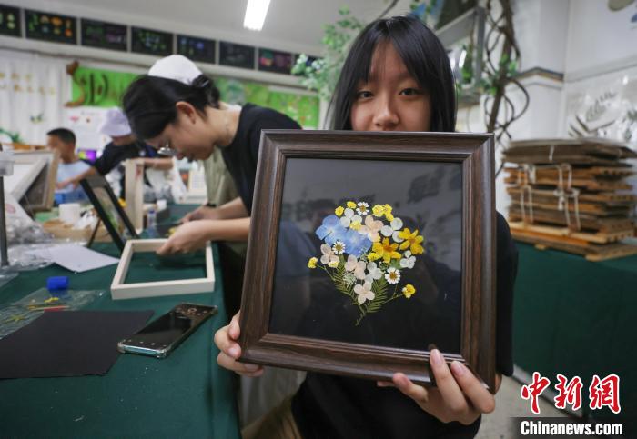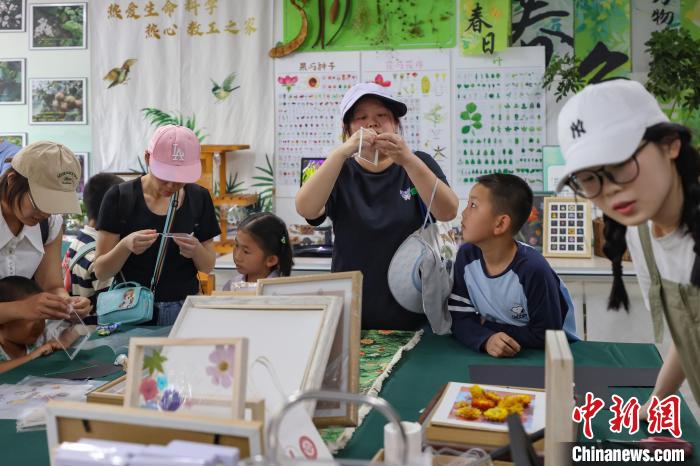 图为5月25日,学生在南京农业大学“植愈工坊”展示制作好的植物画。
