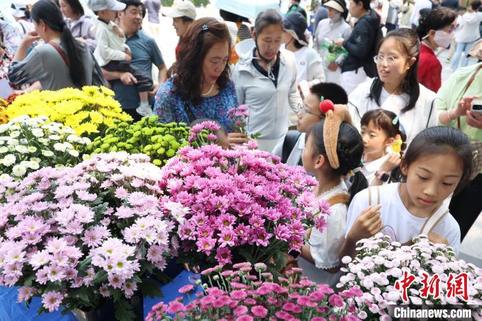 图为5月25日,南京农业大学展示的菊花品种吸引市民目光。