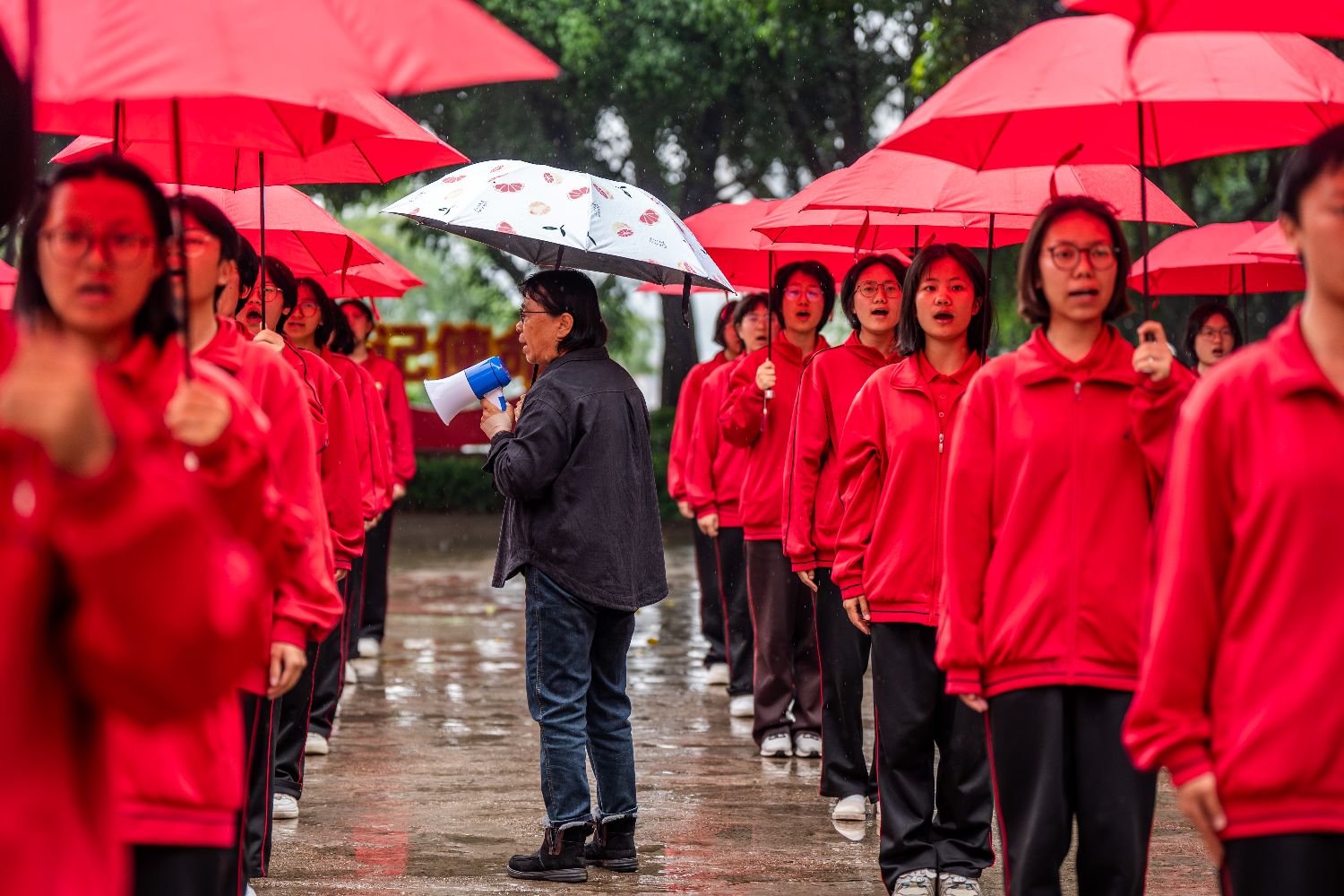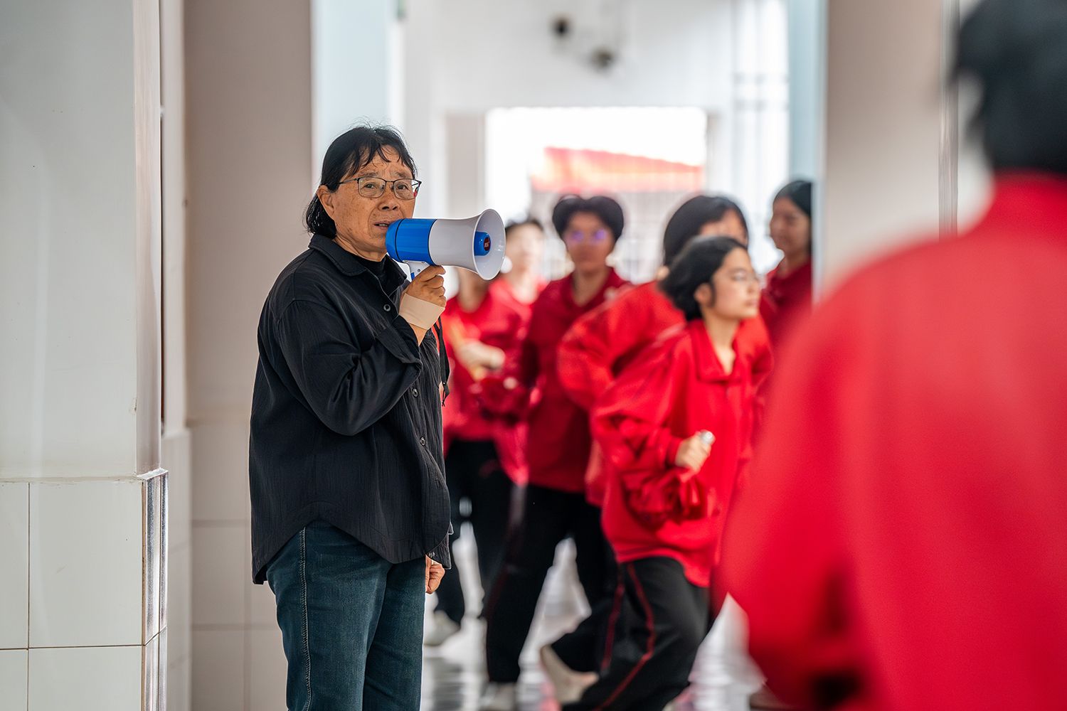当日上午,在华坪女高的校园里,张桂梅使用新的小喇叭向学生们喊话。