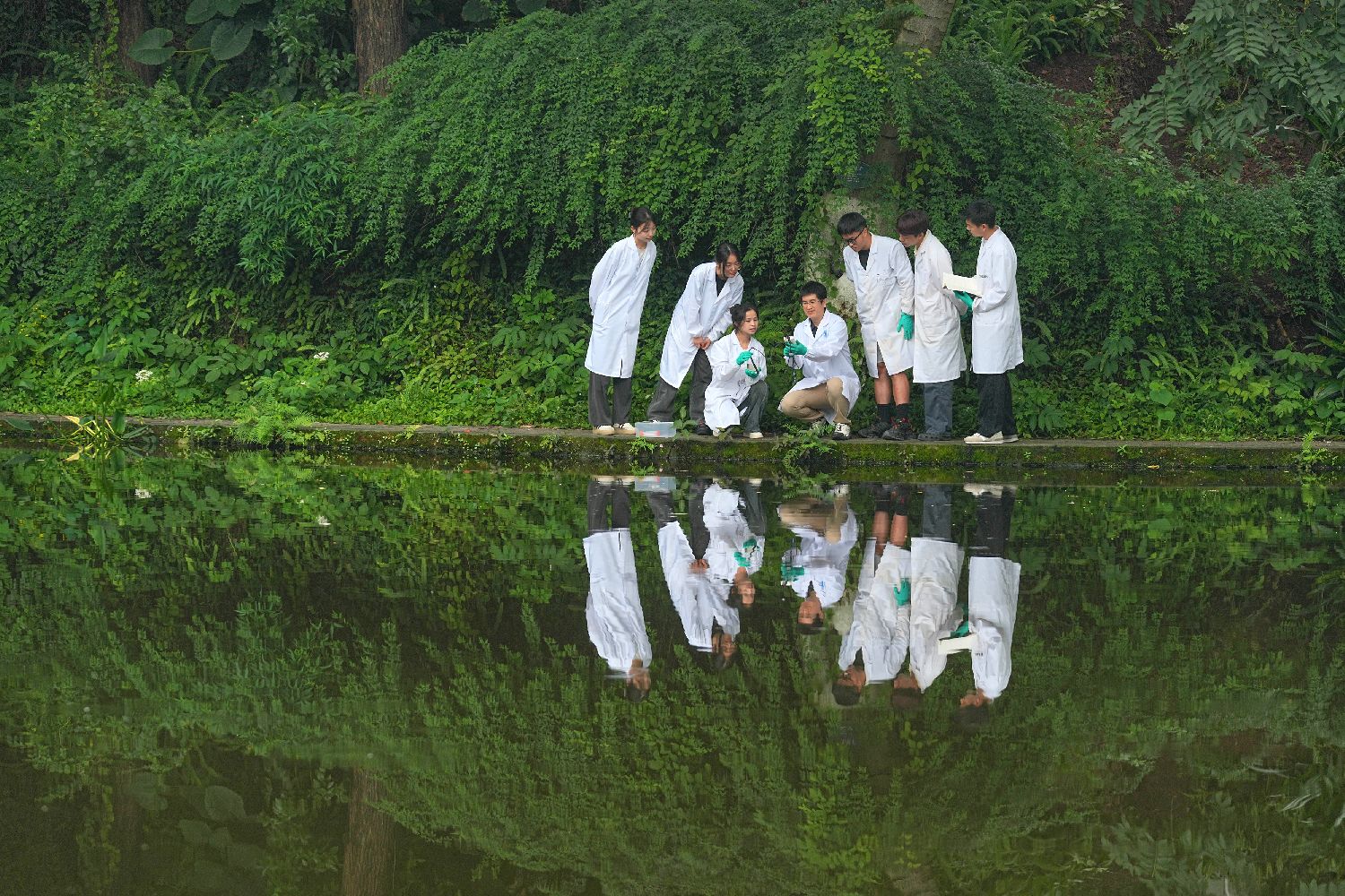 6月4日,在位于重庆的西南大学崇德湖畔,该校资源环境学院的师生检测水质以便摸清校园水体情况。