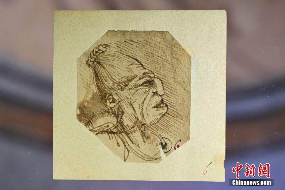 展览展出的达·芬奇的手稿残片《老妇人的脸》。(图片来源:中新网)
