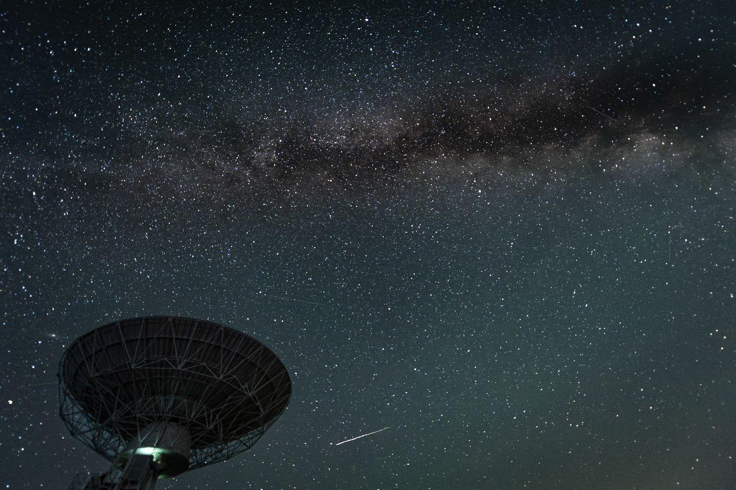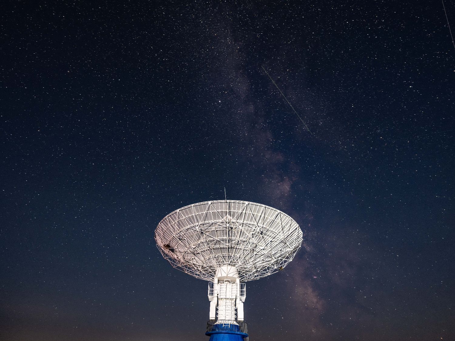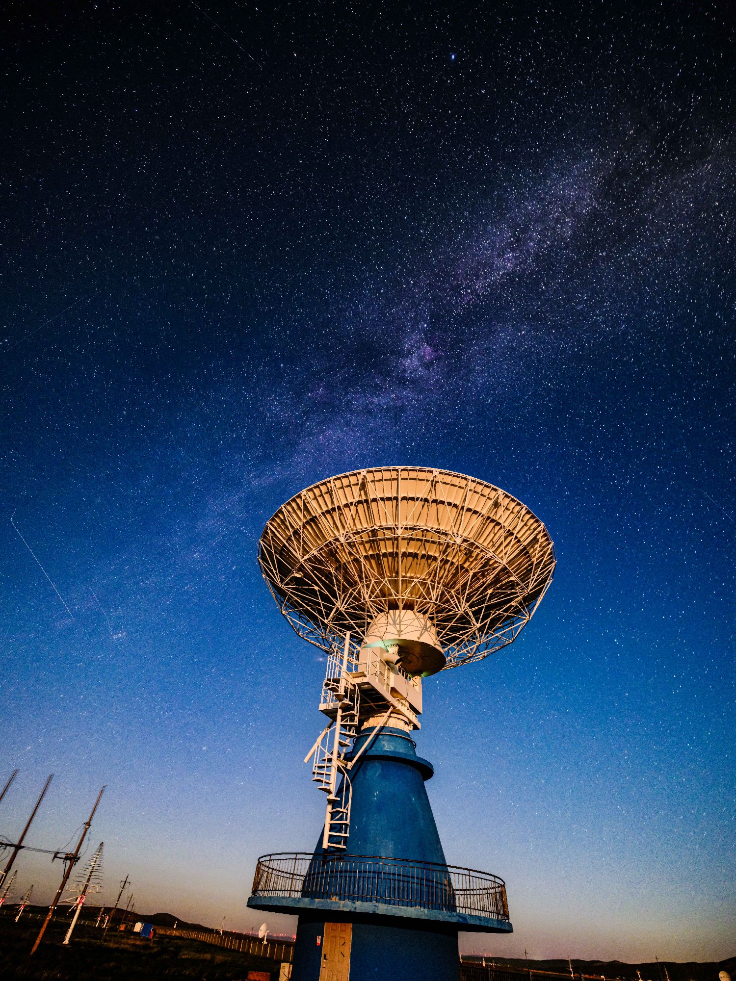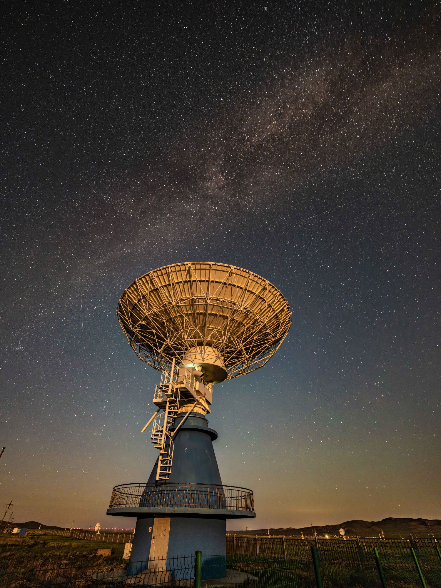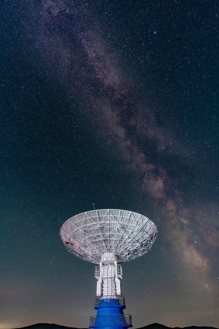在内蒙古自治区锡林郭勒盟正镶白旗明安图镇附近的草原上,坐落着中国国家天文台明安图观测基地。夜色中,银河与天线交相辉映。
