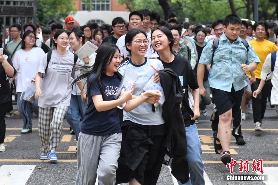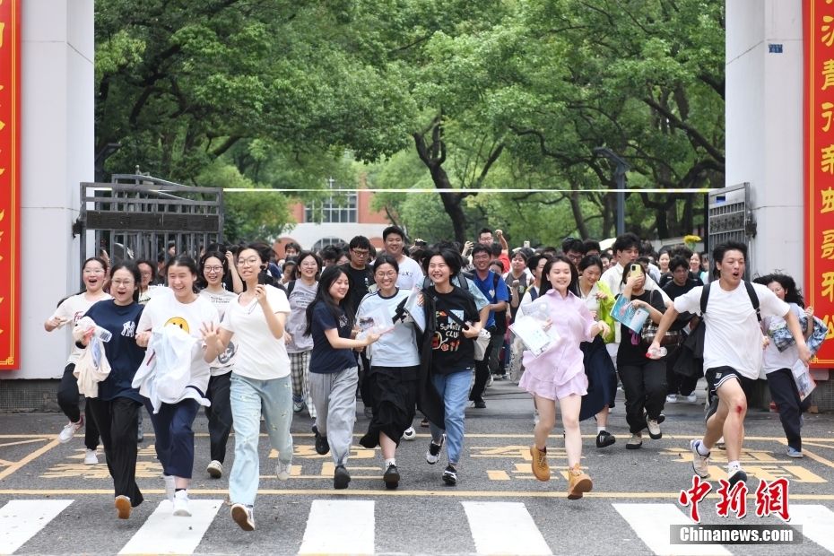 图为在湖南省长沙市一中考点,考生兴奋地跑出考场。(图片来源:本文图片均来自中新网)