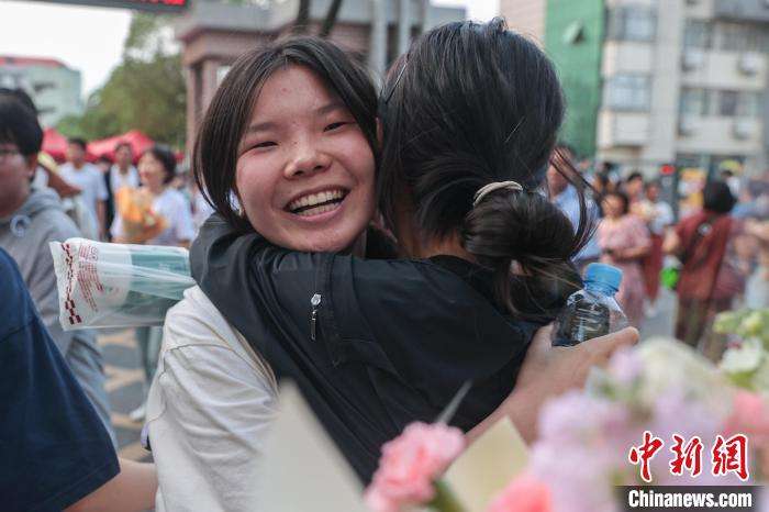 图为在江西南昌青云谱区,考生走出南昌市洪都中学洪都校区考点后,激动相拥。