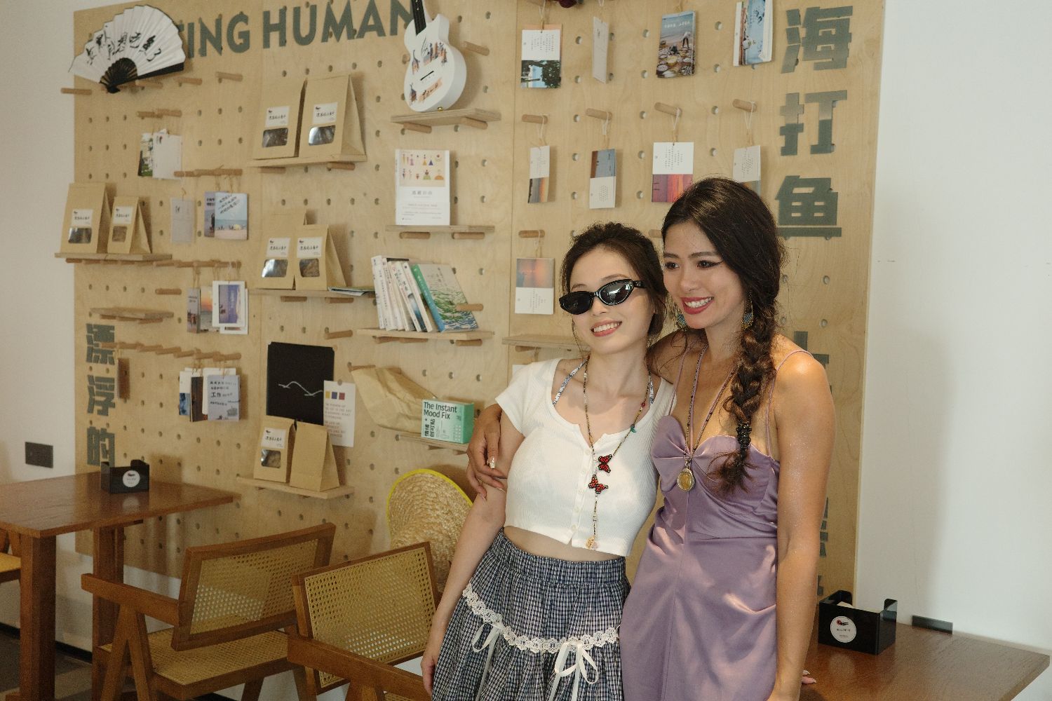 随着荣山寮的走红,越来越多年轻人来到这里寻找新的机会,重庆姑娘夏至(右)就是其中之一。在观赏了“最美落日”并详细了解了海南自贸港建设的政策支持后,她决定留在这里,在村中和朋友一起打理零售商品买手集合店“长屋46号”。她们希望自己的店能够成为荣山寮的“CBD”。