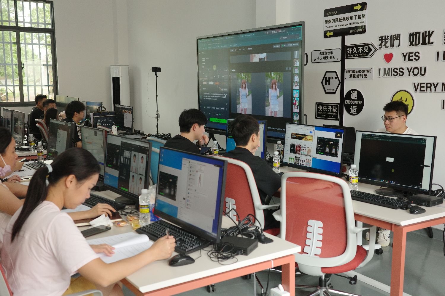 随着龙华动漫产业园二期开街,距离昌学村不远的保明村也成了另外一个“网红村”。目前,这里已有40多家数字创意领域企业入驻,开展“内容出海”业务。图为产业园二期举办的AI技能培训班活动。