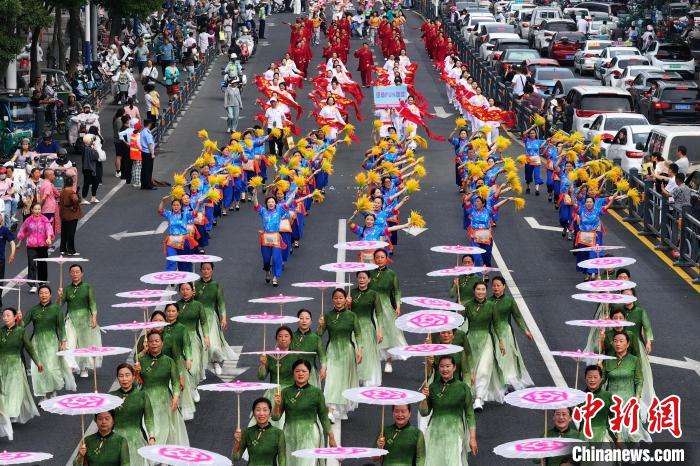 浩浩荡荡的队伍一路巡游一路表演。(图片来源:本文图片均据中新网)