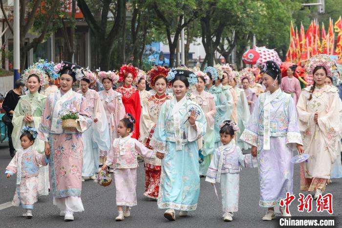 古装队伍在巡游途中。