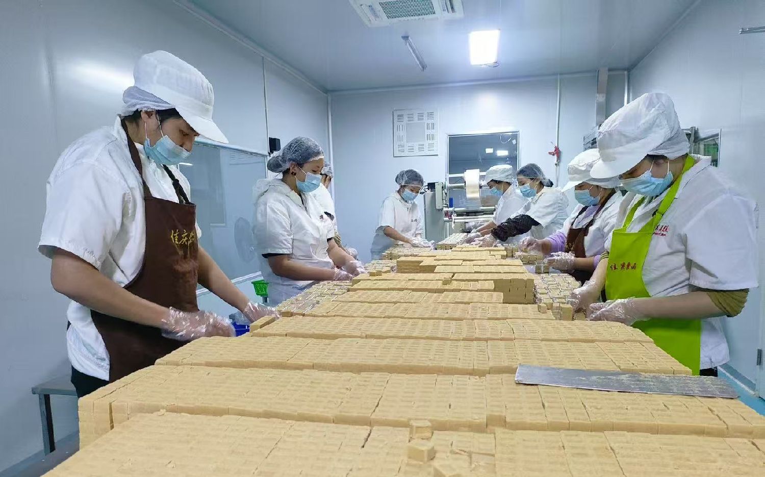 图为工人在包装制作好的东美糕。(图片来源:本文图片除标注外均为受访者供图)