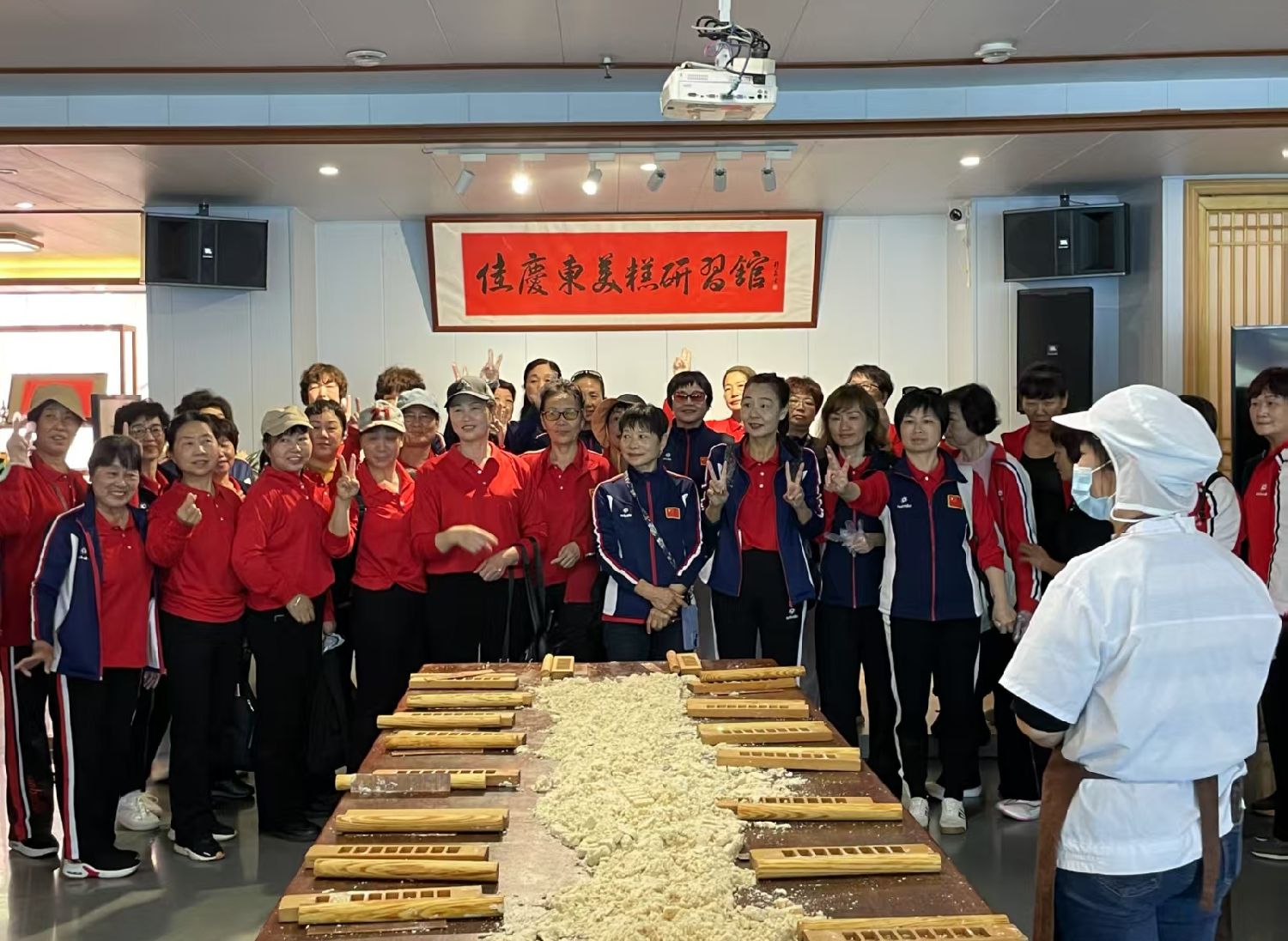 图为今年,游客在佳庆东美糕研习馆体验制作东美糕。