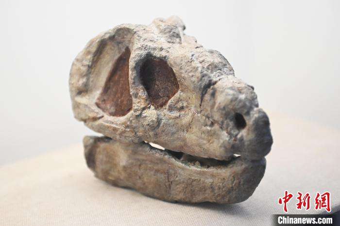 6月16日,在位于甘肃省张掖市肃南裕固族自治县的祁连山国家公园自然博物馆展陈的二叠纪大山口珍稀兽头骨。